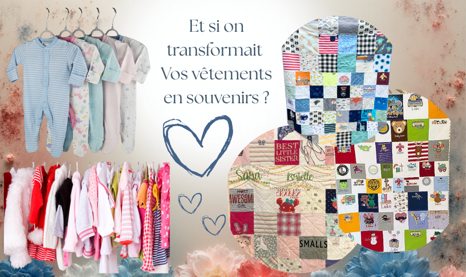 Les couvertures souvenir cousues à la main sont des pièces uniques confectionnées avec soin, à partir de tissus chargés d’histoire (vêtements, draps, ou textiles familiaux).